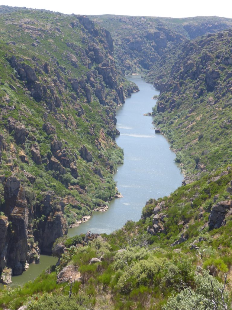 Miranda aan de Douro, waar de rivier de grens vormt tussen Portugal en Spanje. Volgens de reisgids een grandioos landschap, reden genoeg om de wandelschoenen aan te trekken. Grandioos was wel een beetje overdreven, maar was wel een leuke wandeling naar de kapel São João das Arribas in het Douro Internacional Natural Park.